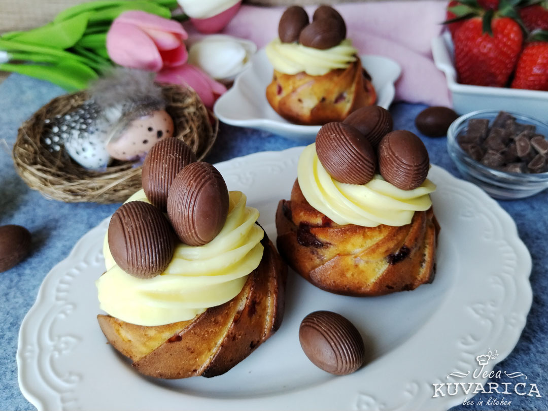 Jagoda mafini sa mlečnom čokoladom i vanila kremom
