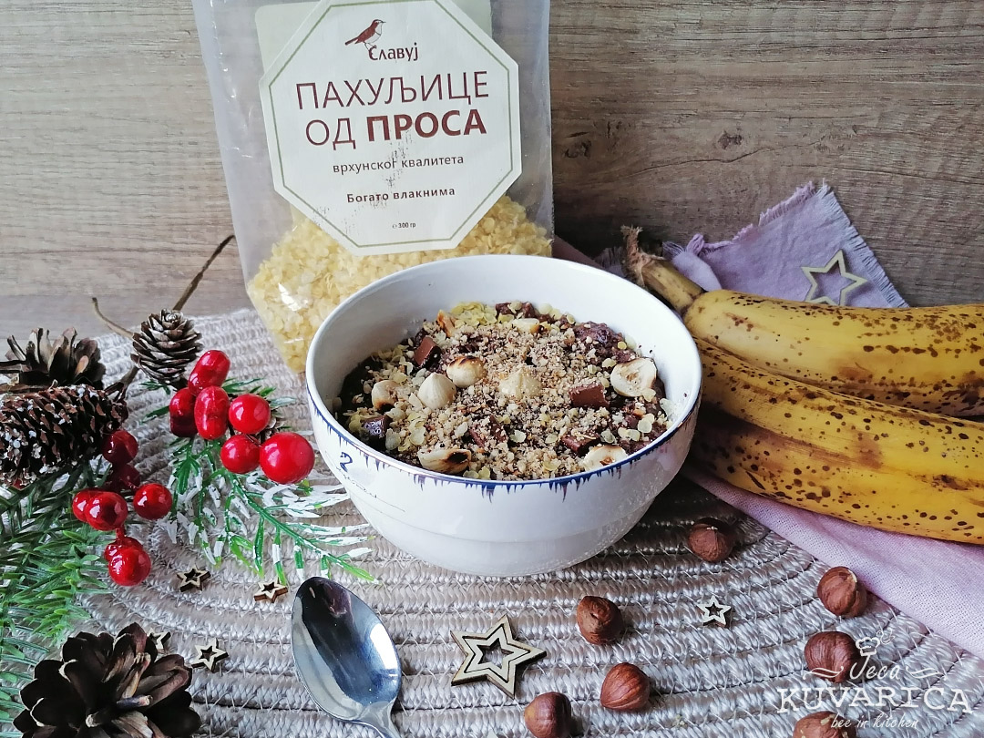 Posni kolač od prosenog brašna sa brusnicama i lomljenim keksom
