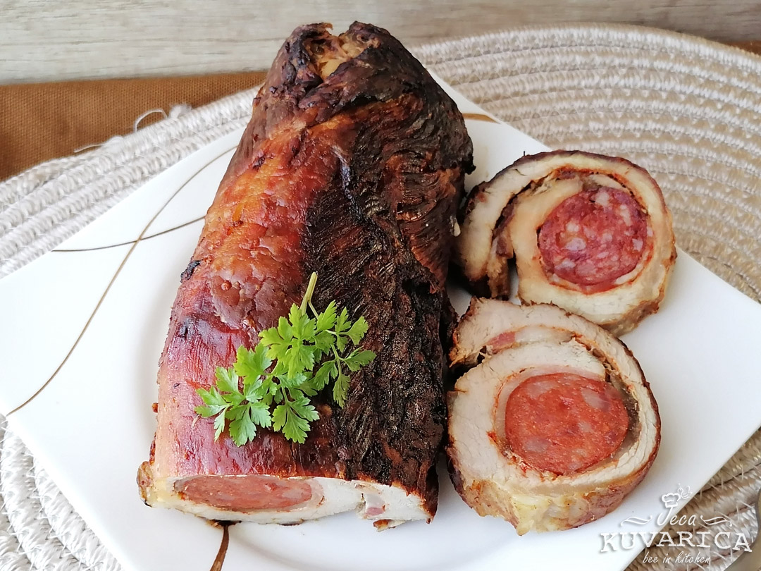 Štrudla od polbinog brašna sa ajvarom, šunkom i krem sirom