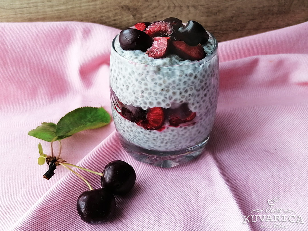 Čia puding sa komadićima trešnje