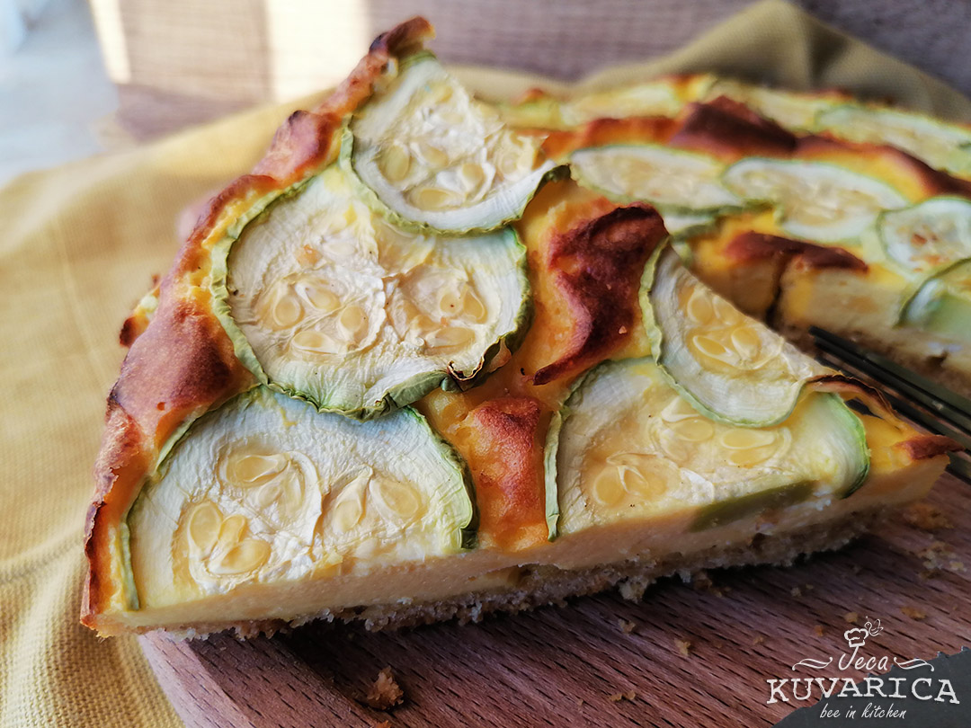 Jednu mladu tikvicu isecite na krugove i poređajte ih preko nadeva.