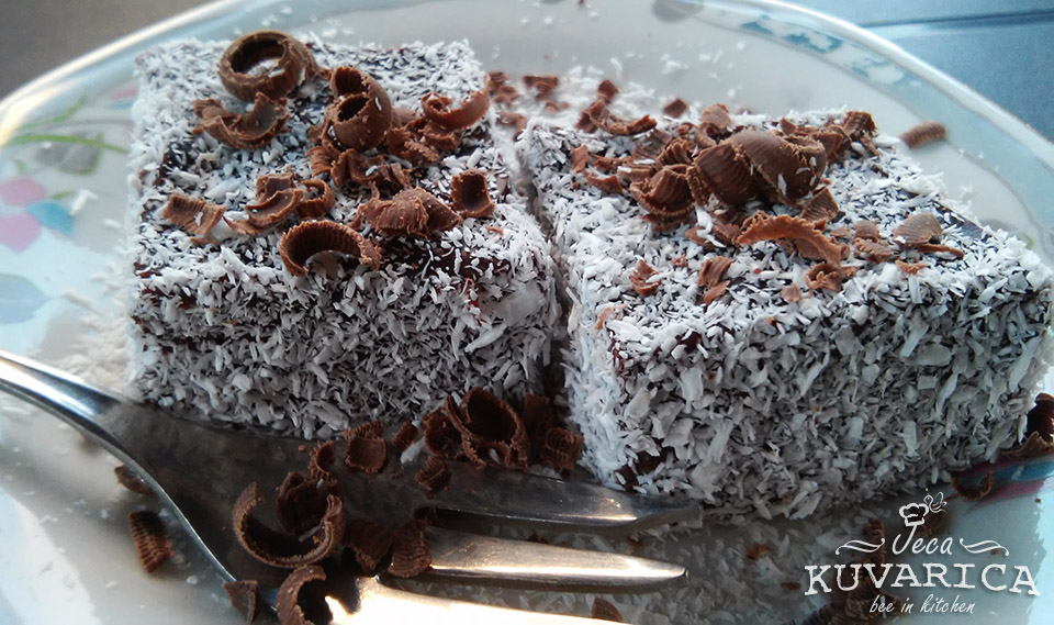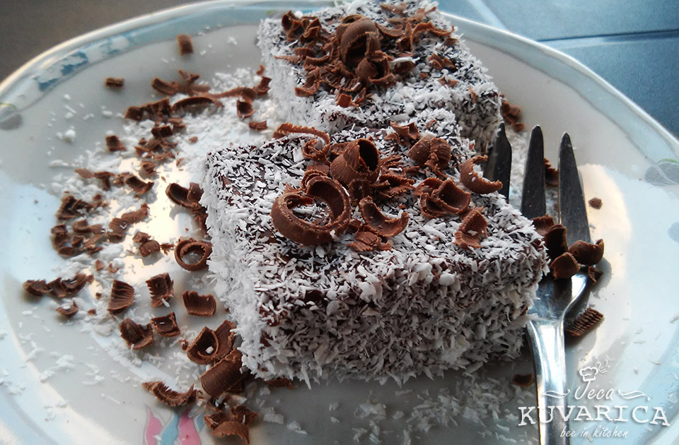 U šerpu na šporetu stavite 200ml mleka i šećer da prokuva. U posebnom sudu umutite puding sa 100ml hladnog mleka i kašikom gustina. Mutite žicom za mućenje da ne bi bilo grudvica. Ovako umućen puding sipajte u mleko koje počinje da vri. Kuvajte dok se ne zgusne, neprestano mešajući. Vruć puding sipajte u kalup i ostavite da se ohladi. Nakon hlađenja isecite na kocke i uvaljajte u kokosovo brašno. Kao dekoraciju iskoristite rendanu čokoladu.