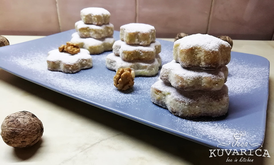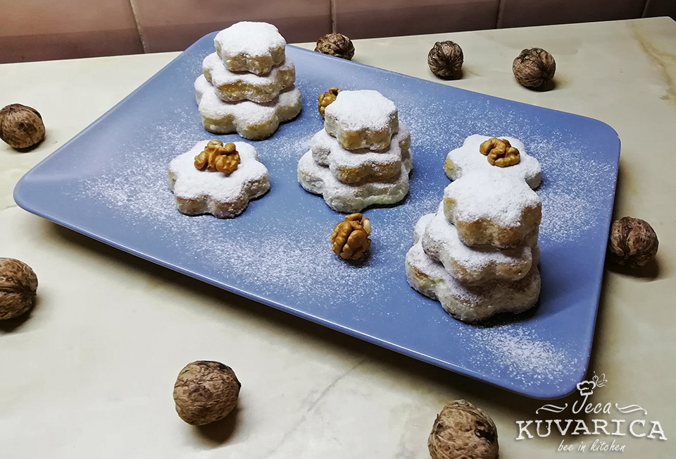 Ohlađene kekse uvaljajte u šećer u prahu.