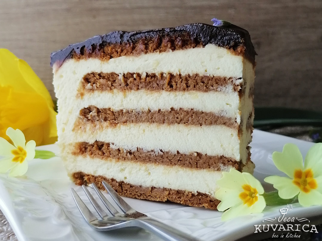 Mutite jaja mikserom, dodajte šećer i toplu vodu i nastavite sa mućenjem dok smesa ne postane penasta. Dodajte ulje, brašno pomešano sa praškom za pecivo i kakao prahom i na kraju umešajte mlevene lešnike.