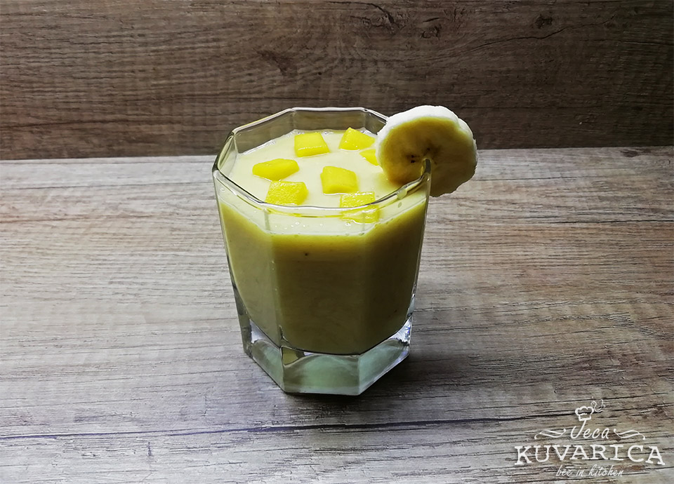 Sve sastojke stavite u blender i izblendajte. Po želji, pre služenja dodajte 2-3 kockice leda.