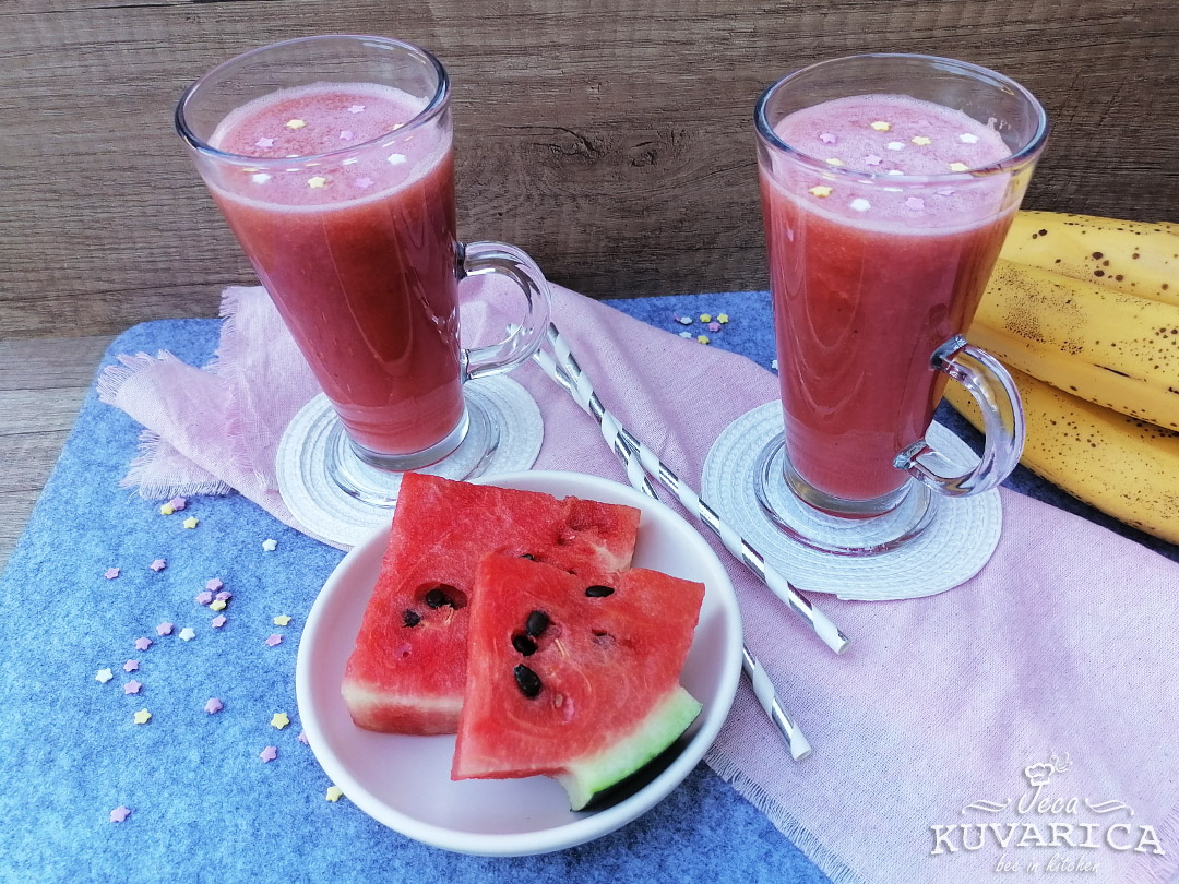 Polovinu manga izblendajte sa šećerom. Iscedite limun i dodajte sok u mango, dodajte hladnu vodu i promešajte.