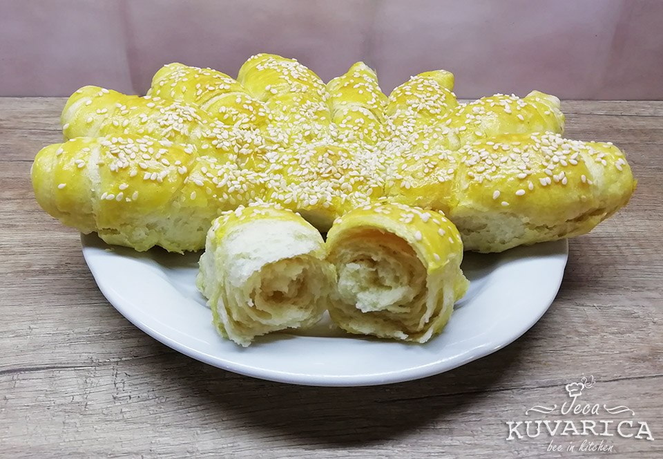 Ostavite da narastu 10-15min pre pečenja. Peći u rerni zagrejanoj na 200 stepeni oko 20 min.
