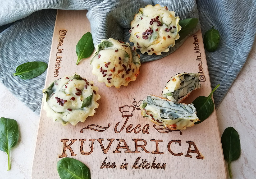 Uzmite 6 kruga. Stavite ih jedan preko drugog tako da se svaki sledeći nastavlja na prethodni i urolajte. "Rolatić" presecite na pola tako da dobijete 2 ružice i prebacite ih u kalup za mafine u kojima ste stavili papirne korpice. Ostatke testa spojite i ponovo razvucite koru i vadite krugove.