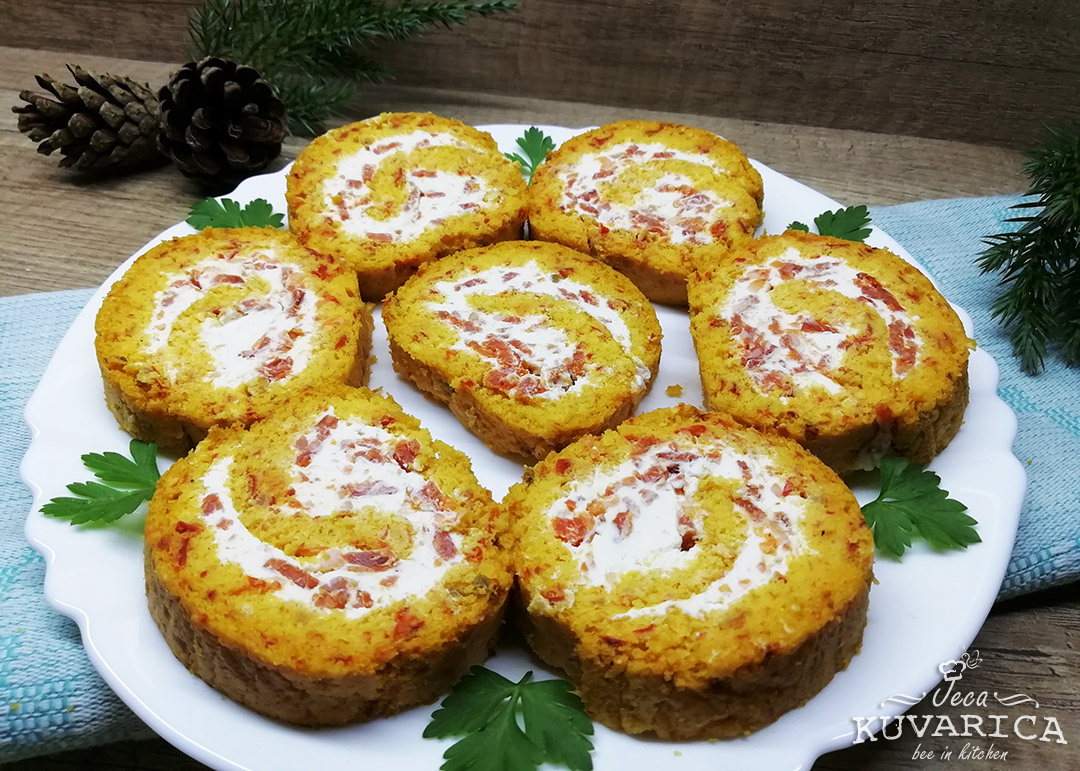Nakon što se kora prohladila odmotajte je i ravnomerno premažite pripremljenom smesom za premaz. Pažljivo je ponovo urolajte.